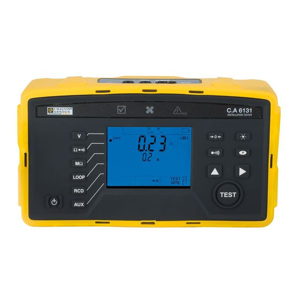 Mit dem C.A 6131 können die Spannung, der Durchgangswiderstand, der Widerstand und die Isolation von Schleifen gemessen werden. Die Messung der Stromstärke kann über eine externe Zange erfolgen. Die Prüfung von Fehlerstrom-Schutzschaltern vom Typ A & AC kann im Rampen- oder Impuls-Modus erfolgen. Der C.A 6131 zeigt darüber hinaus die Drehfeldrichtung an. Das Testergebnis (i.O./nicht i.O) wird sofort auf dem C.A 6131 angezeigt.
