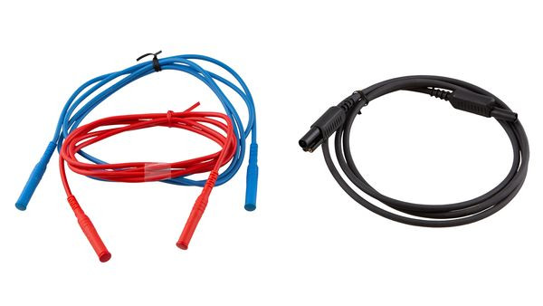 Zubehör für Isolationsmesser C.A 6541 / C.A 6543. 2 Messleitungen mit 3 m Länge in rot / blau, 1 Guard-Leitung mit 3 m Länge in schwarz. Stecker: gerade / gerade.