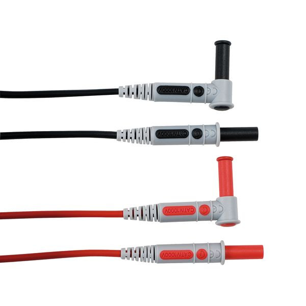 | Kurzbeschreibung | Messleitungen mit 4mm gerade/Winkel Stecker -1,5m-15A-CATIV-1000V-Silikon-rot+sw |