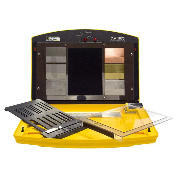 Der Didaktik-Koffer C.A 1875 wurde speziell für die Ausbildung entwickelt. Er besteht aus einer aufheizbaren Wärmeplatte, mehreren Oberflächenplatten aus verschiedenen Materialien und Abschirmungen, die mit Magneten vor dem Koffer befestigt werden können.