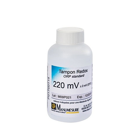 REDOX-Pufferlösung für die Kalibrierung und Feinstellung von Metallelektroden. REDOX-Potential (ORP) (bei 25 °C): 220 mV bei ± 0,02 Abweichung. Lagerdauer vor Öffnung: 24 Monate | Haltbarkeit nach Öffnung: 3 Monate. Verwendung: direkt verwendbare Lösung. Verpackung: Fläschchen mit 125 ml.
