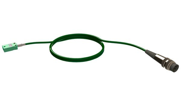 Verlängerungskabel für Thermoelemente. Temperaturbeständigkeit von -25 °C bis 90 °C, Toleranzklasse 2. Mit 5-poligem DIN-Stecker/kompensierter Miniaturbuchse an den Enden. Durchmesser des Verlängerungskabels: 4 mm. 1 m Länge.