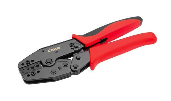 Crimpzange für LWL-Stecker mit Ratschenautomatik und nachstellbarer Sperrvorrichtung. Rundpressung, Crimpmaße: 1,07 mm (0.042”) - 1,72 mm (0.068”) - 3,38 mm (0.133”) - 4,11 mm (0.162”) - 4,95 mm (0.195”), z.B. für SC-/AMP-SMA-/FC-/PC-Stecker, Länge 230 mm