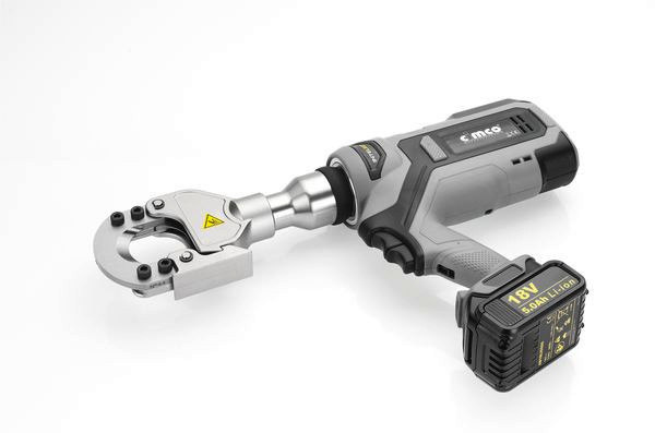 Schneidwerkzeug in Pistolenform: CimCut55, Schneidkopf 270°C drehbar, 2-Stufen-Hydraulik für High-Speed-Vorschub, manueller Rücklauf nach vollendetem Schnitt, auch zum Schneiden von Stahlstangen bis zu einem Durchmesser von 20 mm geeignet: Schneidkraft: 43 kN; Zum Schneiden von: Feindrähtige Cu-Kabel bis zu einem Durchmesser von 32 mm, Erdkabel Cu/AI bis zu einem Durchmesser von 51 mm, Telekom-Kabel bis zu einem Durchmesser von 55 mm, Cu massiv bis zu einem Durchmesser von 18 mm, AI massiv bis zu einem Durchmesser von 25 mm; Max. Schneiddurchmesser: 55 mm, Schneidzeit (querschnittsabhängig): 7-15s; Service-Zyklus: 20.000 Betätigungen; Arbeitsbereich: -10°C bis + 60°C; Akkuspannung: 5.0 Ah-Li-Ion; Akkuladezeit: 40 Min.; Schneidkopf in Guillotine-Form, Maße: 500x335x75, Gewicht: 6.600 g