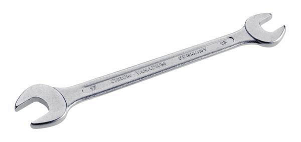 Doppelmaulschlüssel einzeln nach DIN 3110/ ISO 3318. Maulstellung 15°, aus Chrom-Vanadium-Stahl, glanzverchromt, SW 21 x 23 mm