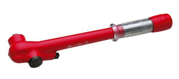 1.000 V Drehmomentschlüssel vollisoliert DIN EN 60900, VDE 0680/2, mit eingebauter Umschaltknarre, einstellbar von 5-50 Nm mit 1/2" Innenvierkant; Länge: 370 mm