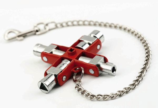 SubMaster, "Elektro", pateniert, universelles Schließsortiment, mit dem doppelten Drehmechanismus lassen sich 8 verschiedene Schließungen in Position bringen. Ein 5 mm Vierkant ist besonders für die Heizungsentlüftung geeignet, für Schließungen in der Industrie, Handwerk, Heizung, öffentlicher Dienst und viele mehr. Schließungen: Vierkant: 5, 6, 7, 8, 9, 10 mm, Dreikant: 7, 8, 9, 10, 11 mm; Innensechskant: 1/4"
