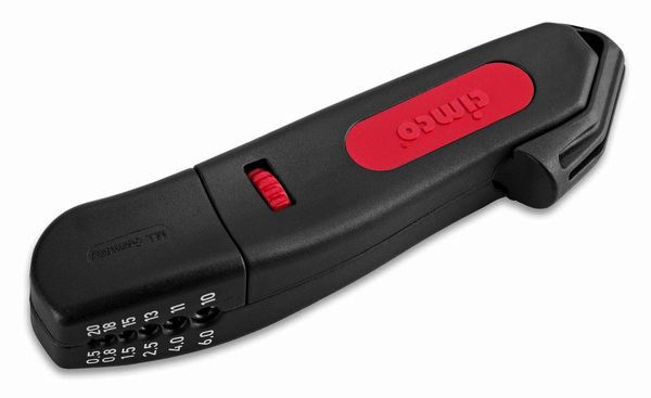 Automatisches Kabelmesser Safety Stripper Plus, Kabelmesser mit selbstdrehender Klinge für Rund- und Längsschnitt, für Kabel von 4 bis 28 mmØ (5/32" bis 1 1/8") . Die Schnitttiefe ist über eine Schraube individuell einstellbar. Griffschalen aus verschleißfestem, glasfaserverstärktem Polyamid. Abisolieren (0,5 - 0,8 - 1,5 - 2,5 - 4,0 - 6 0 mm²) durch Klappmechanismus am Griffende.