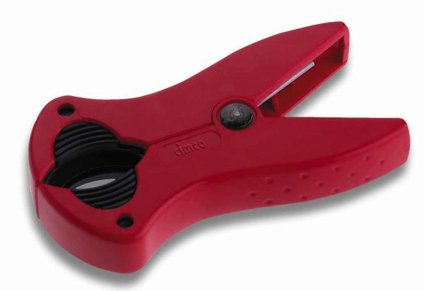 Wellrohrschneider zum Trennen und Ablängen von gewellten Kunststoffrohren (Flexrohren) und Kunststoff-Schutzrohren bis 42 mm ø im Elektro-, Sanitär- und Heizungsbereich, durch einfache Drehbewegung sicheres Schneiden auf dem Außendurchmesser ohne Beschädigung des inneren Rohres, mit zwei auswechselbaren Schneideinsätzen, Gewicht nur 45g. Arbeitsbereich bis zu 42 mm ø; Länge: 110 mm