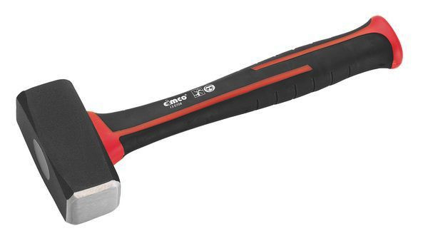 3-Komponenten-Faust-und -Schlosserhammer, mechanische Blockierungg des Hammerkopfes durch Stahlkeil, mit Kunstharz versiegelt. Pinne und Bahn geschliffen. Hochsicherheitstsstiel in 3-Komponenten-Zusammensetzung mit ergometrisch geformten Griff: Seele aus Glasfaser verstärktem Kunststoff, ummantelt durch komfortablen Antirutsch und Antivibrationsgriff, durch die zusätzlich gummierte Grifffläche wird ein sicherer Griff auch mit feuchten oder öligen Händen gewährleistet. Fäustel nach DIN 6475/1193; Gewicht 1000 g