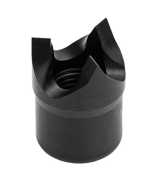 Schraublocher Diamant ein innovativer Spalt-Stempel mit drei Schneidspitzen: Stanzabfall wird in drei Teile gespalten. Geeignet für: Stahlblech (ST 37), Kunststoff und Aluminium. Betätigung: Manuell und hydraulisch. Ausführung: Stempel. Loch- Ø 22,5 mm; Materialstärke 2,0 mm; Nennmaß PG 16; Größe 7/8"; Schraubengröße 9,5x50,0 mm; Vorbohr-Ø 10,0 mm.
