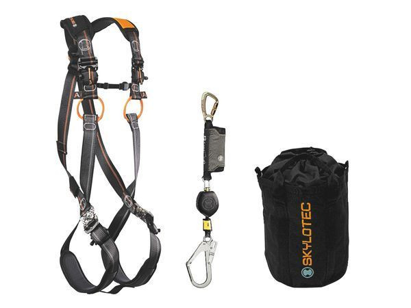Sicherheits-Set Standard 1, flexibel einsetzbares Set mit einem Auffanggerät, das durch einen federgelagerten Rückzugsmechanismus die Fallstrecke so kurz wie möglich hält, Auffanggurt mit zusätzlichen Polstern und einer Tragkraft von bis zu 140 kg. Im praktischen Rope- Bag sind enthalten: Auffanggurt, bis 140 kg (EN 361/358), Auffanggerät, 2,5 m, mit vorderer und hinterer Anschlagmöglichkeit.