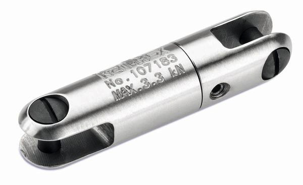Drallausgleichwirbel mit doppelten Axiallagern, aus Edelstahl, zum Verbinden von Ziehstrumpf und Schäkel, Außen-Ø 16 mm, Max. Zuglast 3.3 kN, Länge 64 mm