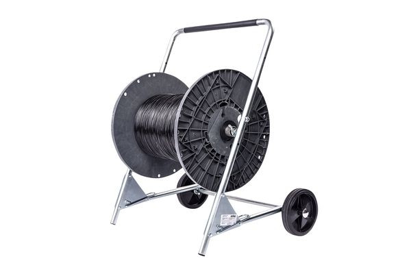 Abspuler für LWL-Trommeln mit gelagerter Trommelachse und Zentrier-Konen zum Abspulen von LWL-Kabeln. Mobil dank Rollfunktion, platzsparend zusammenklappbar. Achse-Ø: 40 mm Konus-Ø 43 bis 110 mm, Trommel-Breite max: 430/545 mm, Trommel-Ø: 800 mm, Trommelgewicht: 200 kg. Lieferumfang: Abspuler-Gestell, gelagerte Trommelachse und 2 Konen.
