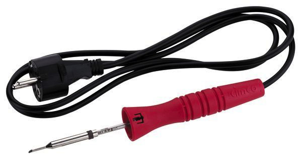 Elektro-Lötgerät, 220 V, mit Kunststoffgriff, 1,5 m-Anschlusskabel und Schuko-Stecker, auswechselbare Kupferlötspitze. Ausführung: 30 Watt; Lötspitzentemp. 410°C; Anheizzeit ca. 1,5 min; Lötspitzen mit einem Ø von 5 mm-gerade..