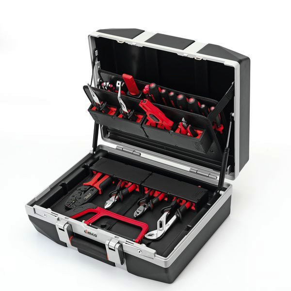 Belastbarkeit bis zu 40 kg, Kofferschalen mit einem zusätzlichen Aluminiumrahmen für erhöhte Stabilität ausgestattet, zwei herausnehmbare Werkzeugtafeln mit gummierten Werkzeug-Einschublaschen- und Einschublamellen und einem Dokumentenfach. Zusätzliche Werkzeugtafel mit integrierten Werkzeug-Einschublamellen in der Bodenplatte. Lieferung inkl. 5 Einsatzfach Carry-Lite 55 zur sicheren Aufbewahrung von Kleinteilen und Zubehör. Revolutionäre Stabilität: Kofferschalen aus 3,5 mm ABS (flugtauglich), Verstärkter Aluminiumrahmen (Einzelrahmen), Scharniere für Kofferschalen im Rahmen integriert, großer Aluminiumgriff mit Kunststoffeinlage, zwei im Rahmen versenkte Zylinderschlösser, besonderes hohe und robuste Füße für maximale Standsicherheit. Revolutionärer Komfort: Zwei Gasdruckstoßdämpfer für komfortables Öffnen des Koffers, Werkzeugtafeln in der Kofferoberschale mit 30 Grad Neigung zur besseren Werkzeugentnahme, Profilraster im Kofferboden für Einsatzfach Carry-Lite 55, Werkzeugtafeln mit neuartiger Durchschub-Begrenzung. Aus recycelbaren Materialien hergestellt, Design und Entwicklung auf Reparaturfreundlichkeit ausgerichtet, komplett mit 21 Werkzeugen. Werkzeugkoffer-Bestückung: 1 x Telefonzange, gerade (10 0216), 1 x Telefonzange, gebogen (10 0238), 1 x Seitenschneider 160 mm (10 0574), 1 x Abisolierzange Super 4 (10 0760), 1 x Elektronik-Seitenschneider (10 1040), 1 x Wasserpumpenzange (10 1224), 1 x Presszangensystem clickncrimp Elektrotechnik (10 6000), 1 x Stiftschlüssel-Satz (11 0596), 1 x Phasenprüfer (11 1280), 1 x Präzisions-Schlitz-Schraubendreher (11 1864), 1 x Schlitz-Schraubendreher mit 1000 V-Schutzisolation 3,0 x 0,5 (11 7702), 1 x Schlitz-Schraubendreher mit 1000 V-Schutzisolation 4,0 x 0,8 (11 7704), 1 x Schlitz-Schraubendreher mit 1000 V-Schutzisolation 5,5 x 1,0 (11 7705), 1 x Kreuzschlitz-Schraubendreher mit 1000 V-Schutzisolation PH 1 (11 7731), 1 x Kreuzschlitz-Schraubendreher mit 1000 V-Schutzisolation PH 2 (11 7732), 1 x Kreuzschlitz-Schraubendreher mit 1000 V-Schutzisolation PZ 1 (11 7741), 1 x Kreuzschlitz-Schraubendreher mit 1000 V-Schutzisolation PZ 2 (11 7742), 1 x Kabelschere Duocut ( 12 0108), 1 x Taschensäge Profi (12 0490), 1 x 1000 V Sicherheitskabelmesser (12 1042), 1 x Kabelmesser System 4 -70 (12 2016)