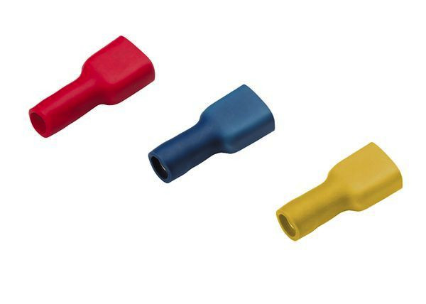 Flachsteckhülsen, vollisoliert - Technische Daten - Werkstoff: CuZn (Messing) - Oberfläche: galvanisch verzinnt - Isolation: vollisoliert PA (Polyamid, Nylon), halogenfrei - Temperaturbeständigkeit -60°C bis +105°C - 600 V max.- Easy Entry ermöglicht einfaches und schnelles Einführen des Leiters. Querschnitt: 0,5 - 1 mm² ; Steckermaß: 2,8x0,8 mm; Isolationsfarbe: rot; L1: 20; L8: 7,5; D1: 1,6; Gewicht per 100St.~kg: 0,1; UL gelistet: x; VE/Stck. 100.
