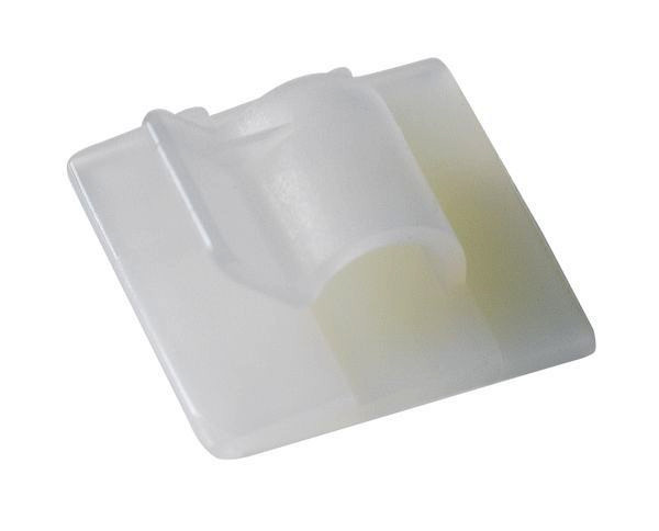 Kabelclip geeignet zur Befestigung und jederzeitigem Lösen eines oder mehrerer Schläuche, Rundkabel und Leitungen verschiedener Ø. Einsatz besonders bei Verlegen von Kabeln auf sehr glatten harten Oberflächen und schwer zugänglichen Stellen, wo der Einsatz normaler Befestigungssockel / Kabelbinder nicht möglich ist. Aus Polyamid 6. 6, naturfarbig, selbst verlöschend gemäß UL 94 V-2, selbstklebend, LxBxH 26x26x13 mm, maximaler Kabeldurchmesser 10 mm.