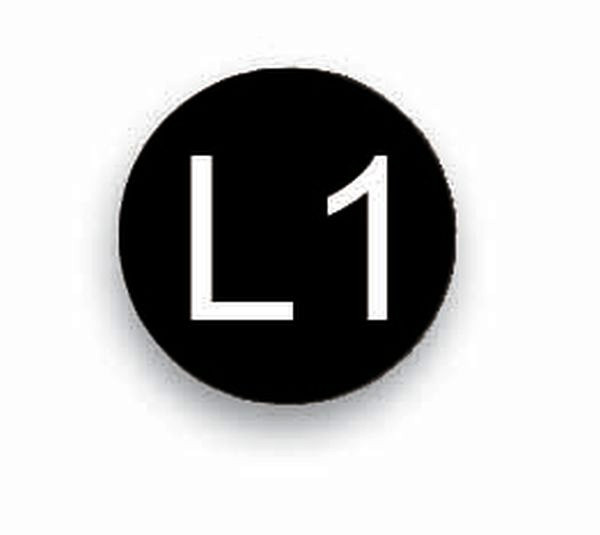 Leiterkennzeichnung, die selbstklebenden Folienzeichen zur Kennzeichnung von blanken und isolierten Leitern, Gehäusen, Schaltschränken und Geräten werden in verschiedenen Größen auf Karte zur schnellen Aufbringung geliefert. Die Zeichen entsprechen den Normen DIN40 009, DIN 40 011 und IEC. Material: Selbstklebende PVC-Folie mit Kaschierung, 0, 10 mm stark. Temperaturbeständig von -30°C bis +100°C, schmutzabweisend, dauerhafte Klebekraft. Ø-12,5 mm. Ausführung: Außenleiter 1, schwarz; Stück pro Bogen: 10; VE: 1.