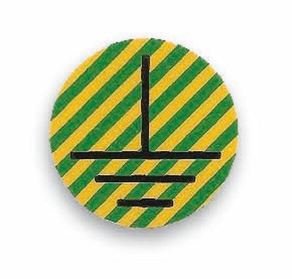 Leiterkennzeichnung, die selbstklebenden Folienzeichen zur Kennzeichnung von blanken und isolierten Leitern, Gehäusen, Schaltschränken und Geräten werden in verschiedenen Größen auf Karte zur schnellen Aufbringung geliefert. Die Zeichen entsprechen den Normen DIN40 009, DIN 40 011 und IEC. Material: Selbstklebende PVC-Folie mit Kaschierung, 0, 10 mm stark. Temperaturbeständig von -30°C bis +100°C, schmutzabweisend, dauerhafte Klebekraft. Ø-12,5 mm. Ausführung: Erde; Stück pro Bogen: 10; VE: 1.