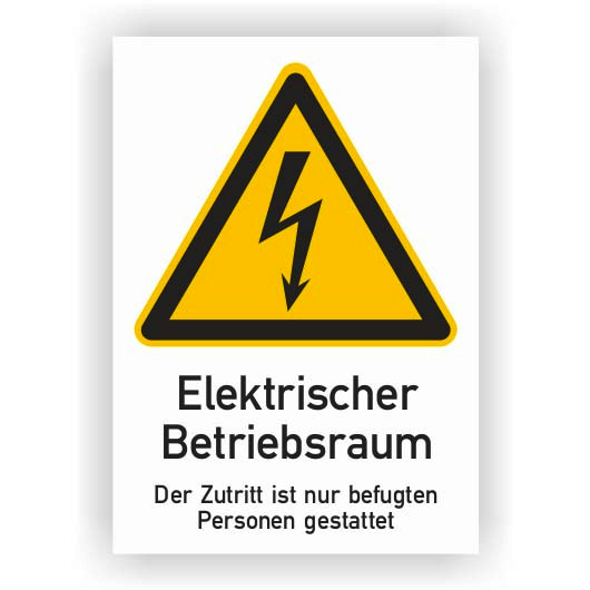 | Kurzbeschreibung | Warnzeichen für Elektrotechnik, selbstklebend, Text: "Elektrischer Betriebsraum..." |