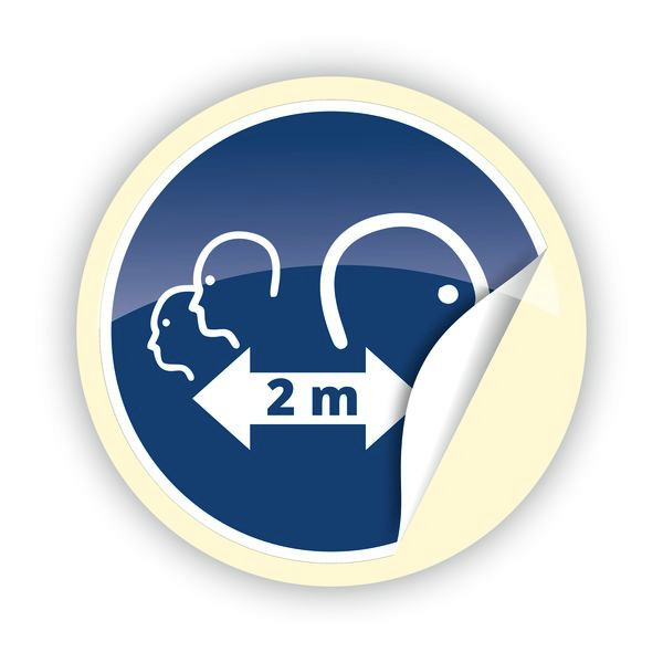 | Kurzbeschreibung | Gebotsaufkleber, Ø 200 mm "Abstand halten, Körperkontakt meiden! |