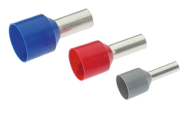 Isolierte Aderendhülsen für kurzschlussfeste Leitungen bis 3 kV mit stärkerem Isolationsmantel, gefertigt aus hochwertigen Kupfer-DHP. Die Oberfläche ist galvanisch verzinnt mit einer Mindestschichtstäke von 3 µm für einen maximalen Korrosionsschutz. Der Kunststoffkragen ist deutlich größer gestaltet, sodass auch breitere Leitungsisolationen unter dem Kragen Platz finden. Temperaturbeständig bis 105°C, für Leitungen Klasse 5 / 6 nach IEC 60228