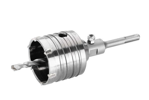 Schlag-Bohrkrone, die 6 mit Silber verlöteten, exakt geschliffenen Schneiden erreichen eine hohe Standzeit auch in harten Materialien. Der gehärtete Stahlkörper mit M 16 Innengewinde und dem optimierten Rundlauf ist bestens geeignet für Beton Stein, Mauerwerk, Klinker, Ziegel und Leichtbaustoffe. Aufnahmeschaft in 6-kant oder SDS-Plus-Variante. Verschleißarme Hartmetallzähne mit Schlitzlötung sorgen für max. Stabilität. Mit auswechselbarem Zentrierbohrer für leicht schlagenden Einsatz geeignet (materialabhängig), passgenaues Einbringen von Schalter- / Verteilerdosen möglich. Ausführung: Schlagbohrkrone mit SDS-Plus, mit einem Bohr-Ø von 68 mm.