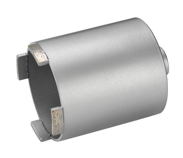 Diamant-Bohrkronen Solid L mit einer Arbeitslänge von 90 mm, mit aufgelaserten Diamantsegmente aus Diamantkorn- Bindung; geeignet für: Betonerzeugnisse (weich), Hohlblockstein, Mauerstein, Ziegel (weich), Kalksandstein (weich abrasiv/hart/hochverdichtet), Putz und Gasbeton Ausführung: Höhe 8 mm; Segment Länge: 24 mm; Anzahl: 43 Ø: 68 mm