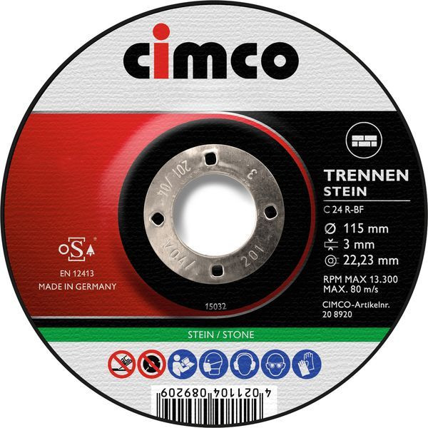 Korund-Trennscheiben Stein, Geeignet für: Beton, Kalksandstein, Marmor, Fliesen, Kacheln, Schiefer, Terrazzo, Tonrohre, Waschbeton, Ziegel, Gasbeton, Dachziegel. Gute Standzeit, gute Schnittleistung. 3,0 mm Stärke; Ausführung: gekröpft; Ø: 115 mm