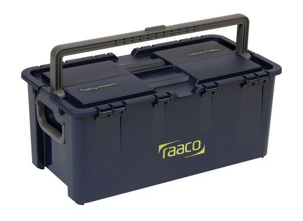raaco Compact- der vielseitige Werkzeugkoffer für den Profi. Wohl durchdachte Gestaltung bis ins kleinste Detail hat in Kombination mit schlagfestem Kunststoff eine Serie robuster Werkzeugkoffer für alle Zwecke hervorgebracht – kompaktes Design mit hoher Flexibilität. Compact-Koffer haben ein geringes Eigengewicht, sind aber gleichzeitig sehr belastbar. Und sie nutzen nicht ab, rosten oder verbeulen nicht. Das verwendete Material ist langlebiges Polypropylen, das auch gegen die meisten Säuren und Chemikalien resistent ist. Den Compact gibt es in mehreren Varianten und Größen. Ganz gleich, für welche Variante Sie sich entscheiden – Sie erhalten immer ein preisgekröntes Design mit großer Haltbarkeit: Die Koffer wurden mit 6 internationalen Fachpreisen für Innovation, Design und Anwenderfreundlichkeit ausgezeichnet. COMPACT37, Werkzeugkoffer inkl. 7 Einsätzen im herausnehmbarem Werkzeugträger und Trennwänden für die Unterteilung des Kofferinnenraums. Farbe: raaco blau; Tragvermögen: 40 kg; Gewicht: 3.270 g; Größe: TxBxH 296x540x230 mm