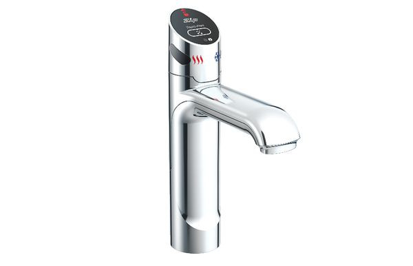 Zip Touch-Free BCS, verchromt glänzend Sensor-Armatur für berührungsloses Zapfen von kochendem, gekühltem oder kohlensäurehaltigem Wasser. Funktion zur bequemen Mengenbefüllung, fester Auslauf 12cm, Höhe 21cm, Durchmesser 35 mm Lochbohrung erforderlich.