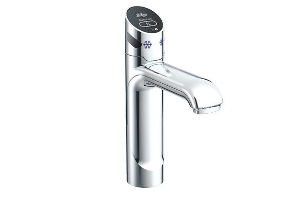Zip Touch-Free CS, verchromt glänzend Sensor-Armatur für berührungsloses Zapfen von gekühltem oder kohlensäurehaltigem Wasser. Funktion zur bequemen Mengenbefüllung, fester Auslauf 12cm, Höhe 21cm, Durchmesser 35 mm Lochbohrung erforderlich.