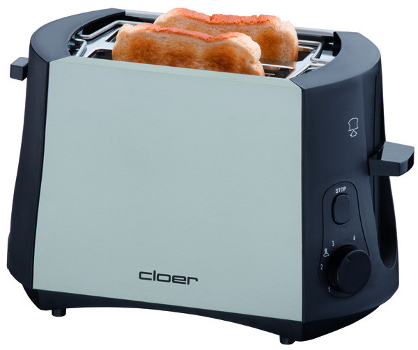 elektronische Bräunungsgradkontrolle (Sensorelektronik) mit stufenlosem Drehregler, integrierter Brötchenaufsatz, Stopp-Taste, Nachhebevorrichtung, Krümelschublade, automatische Abschaltung bei Verklemmen einer Brotscheibe, wärmeisoliertes Gehäuse aus Metall