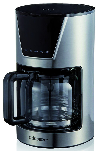 LCD-Touch-Display mit Uhrzeit und Timer-Funktion, Aromaintensität in drei Stufen wählbar, herausnehmbarer Filtereinsatz, Tropf-Stopp-Funktion, außen liegende Wasserstandsanzeige, ON/OFF-Taste, automatische Abschaltung 35 min. nach Brühvorgang, Edelstahlgehäuse mit schwarzer Kunststoffblende