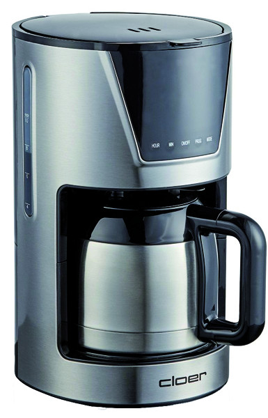 LCD-Touch-Display mit Uhrzeit und Timer-Funktion, Aromaintensität in drei Stufen wählbar, herausnehmbarer Filtereinsatz, Tropf-Stopp-Funktion, Isolierkanne aus Edelstahl, außen liegende Wasserstandsanzeige, ON/OFF-Taste, automatische Abschaltung nach Brühvorgang, Edelstahlgehäuse mit schwarzer Kunststoffblende