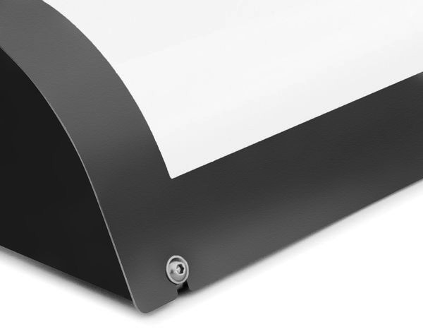 Wandleuchte aus Edelstahl, pulverbeschichtet in Anthrazit, Diffusor aus Opalglas. Integrierter HF-Bewegungsmelder. Farbe Anthrazit, Material Edelstahl, Opalglas, Lichtquelle: 1 x LED, 12 Watt, 1500 lm, 3000 K, CRI 80, 220-240 V, 50-60 Hz, IP44, Schutzklasse I, Maße: 280x180x80 mm