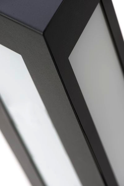 Wandleuchte aus Edelstahl, pulverbeschichtet in Anthrazit, Diffusor aus Opalglas. Integrierter IR-Bewegungsmelder. Farbe Anthrazit, Material Edelstahl, Opalglas, Lichtquelle: 2 x E27, max. 60 Watt, 220-240 V, 50-60 Hz, IP44, Schutzklasse I, Maße: 400x160x90 mm