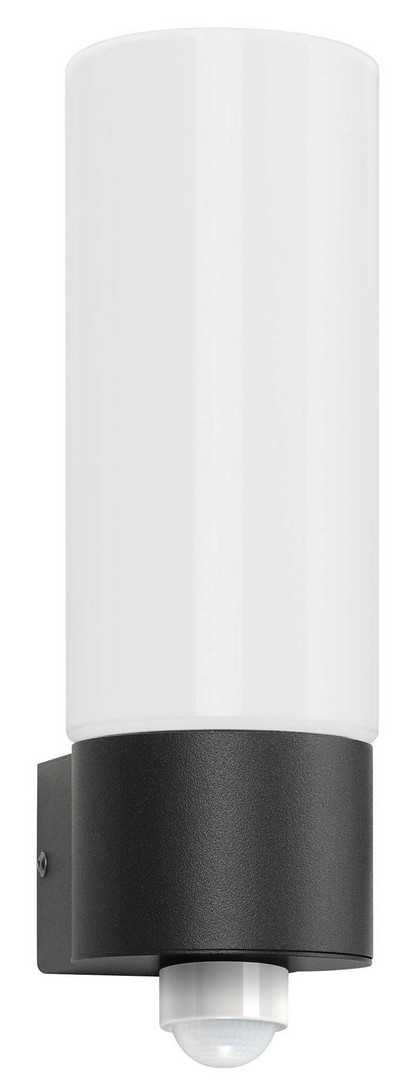 Wandleuchte, Edelstahl anthrazit pulverbeschichtet, Opalglas weiß, Bewegungsmelder ca. 200°, Zeiteinstellung ca. 10 Sek. - 8 Min., Reichweite max. 8 m, ohne Leuchtmittel, 1x E27 max. 100 Watt, BxHXT 11x30x14 cm, IP44