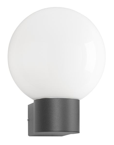 Wandleuchte aus Edelstahl, pulverbeschichtet in Anthrazit, Diffusor aus Opalglas. Farbe Anthrazit, Material Edelstahl, Opalglas, Lichtquelle: 1 x E27, max. 100 Watt, 220-240 V, 50-60 Hz, IP44, Schutzklasse I, Maße: 300x230x260 mm
