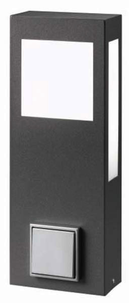 Stehleuchte, mit Steckdose, Edelstahl pulverbeschichtet anthrazit, Lichtaustritt nach vorne, hinten und seitlich, weißes Makrolon, BxHxT 40x16x8 cm, Schraub-Befestigung an geeigneten Fundament oder Verankerung mit Erdspieß CMD 38/1, 1x Leuchtmittel Osram Dulux LED 7 Watt 2G11 im Lieferumfang, ca. 340 Lumen, ca. 3000 K, IP44