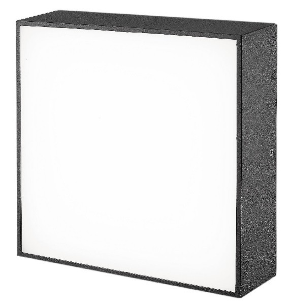 LED Wand- oder Deckenleuchte, Aluminium anthrazit pulverbeschichtet, Abdeckung Makrolon, 1 x LED 10 Watt, ca. 3000 Kelvin, 898 Lumen, HxBxT 240x240x71 mm, IP65, EEK F