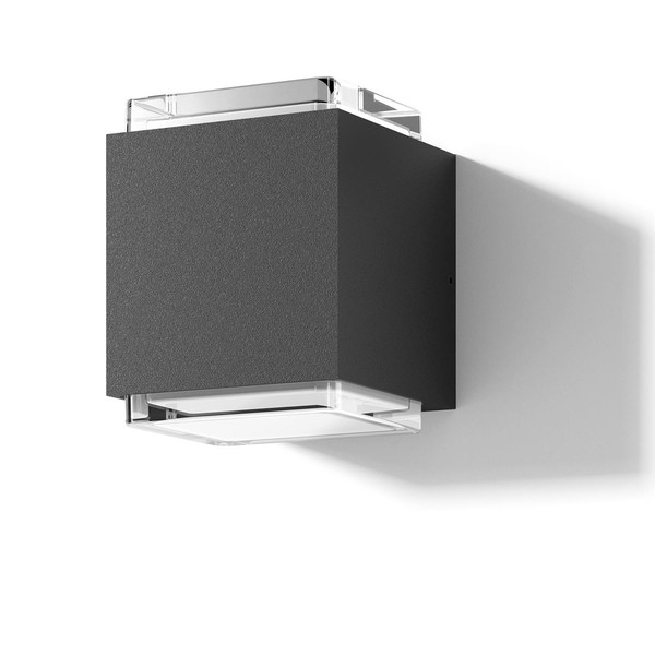 LED-Wandleuchte, anthrazit, Aluminium pulverbeschichtet, Kristallglas klar, Abstrahlung nach unten und oben, 2 x LED 10 Watt, ca. 3000 Kelvin, 397 Lumen, BxHxT 12x14,5x12 cm, IP65