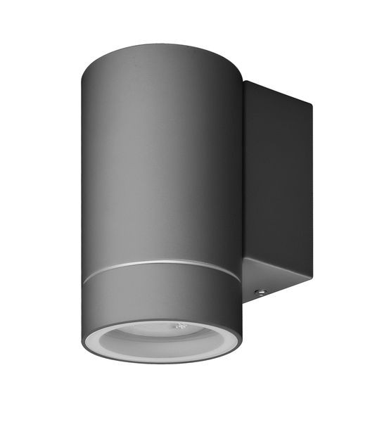 Wandleuchte aus Aluminium-Druckguss, pulverbeschichtet in Anthrazit, Diffusor aus Klarglas. Farbe Anthrazit, Material Aluminium-Druckguss, Klarglas, Lichtquelle: 1 x GU10, max. 35 Watt, 220-240 V, 50-60 Hz, IP65, Schutzklasse I, Maße: 115x64x95mm