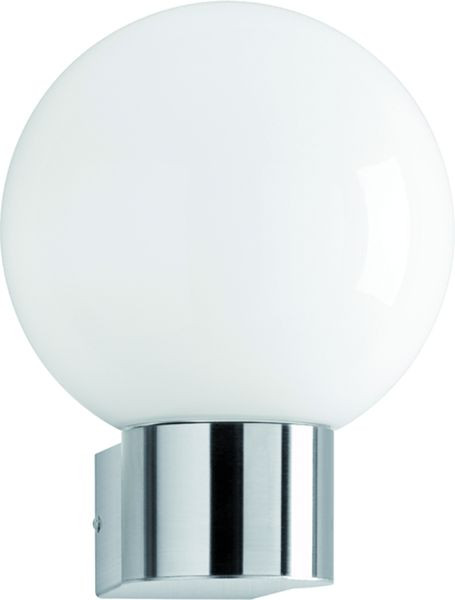 Edelstahl-Wandleuchte, Opalglas weiß, ohne Leuchtmittel, 1x E27 max. 100 Watt, BxHxT 23x30x26 cm, IP44