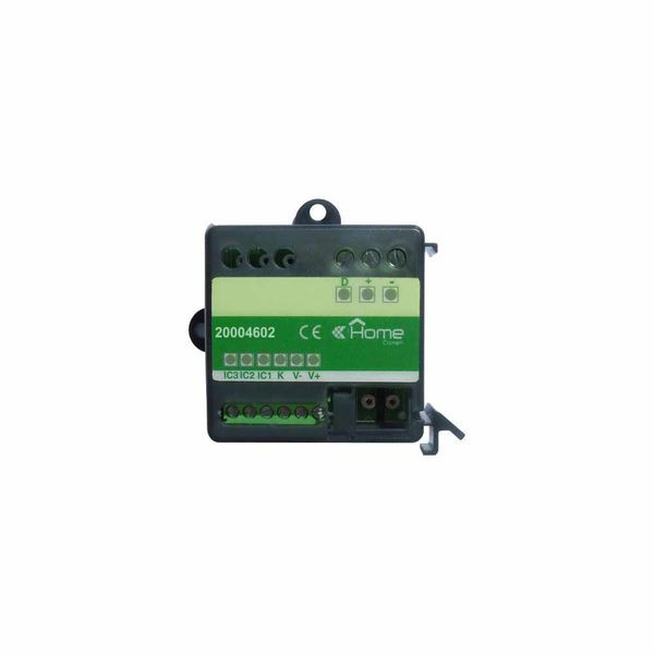 SimpleHome Modul mit einem konfigurierbaren Relais 10A NO/NC. Für Unterputz- oder DIN-Schienen-Montage. Abmessungen: 42x42x18mm (1 DIN-Modul). Maximaler Eingangsstrom: 20mA.