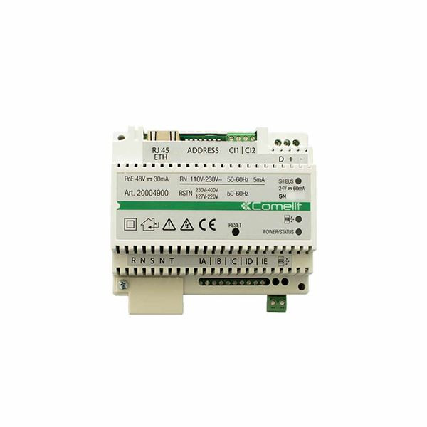 Energiemessgerät, dass durch Anschluss von 5 Stromwandlern Art.20004910 (nicht im Lieferumfang enthalten) 5 Stromkreise und 2 Impulssignale (Wasser, Gas, etc...) messen kann. Das Modul kommuniziert mit der Haussteuerung über den SimpleHome BUS oder mit der Türsprechanlage über den LAN-Port. Es kann auch mit dem Cloud-Service kommunizieren, um die erfassten Messwerte zu archivieren. Die erhaltenen Daten können in grafischer und tabellarischer Form auf kompatiblen ViP-Türmonitoren, auf Hausautomationsüberwachungsgeräten und auf Plattformen, die speziell für den Abruf von Informationen aus der Cloud entwickelt wurden (Smartphone- und Tablet-Apps, webbasierte Systemverwaltungsdienste usw.), angezeigt werden. Abmessungen: 6 DIN-Module Leistungsaufnahme: max. 1,5 W. Speisung: 12/24 Vdc oder PoE.