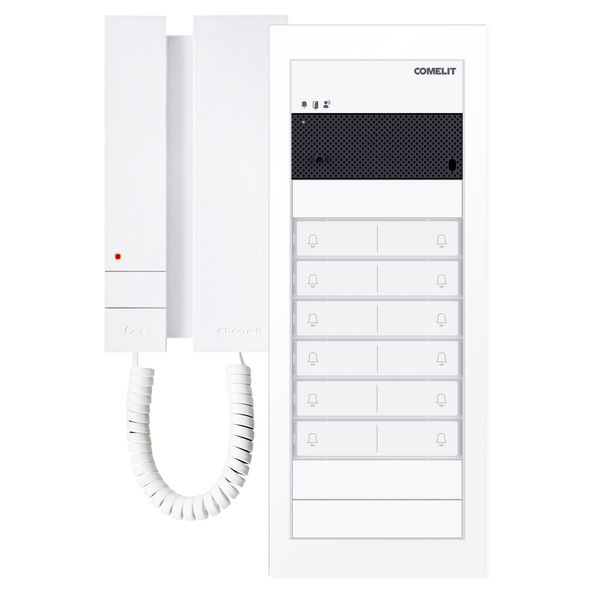 Paketlösung Ultra Audio inklusive Mini mit Hörer, SB2, UP, weiss. Es können maximal 4 Innenstationen Audio, pro Teilnehmer, installiert werden. Dieses Kit besteht aus: 1x UP-Gehäuse 3110/3A, 1x Unterputzrahmen UT9163W, 1x Lautsprecher Audio UT2010W, 2x Tastenmodul UT9200, 3x Tastenabdeckung Blind UT9221MW, 6x Tastenabdeckung UT9212, 1x Netzgerät 1210, 11x Innenstation Audio Mini mit Hörer 2738W/A.