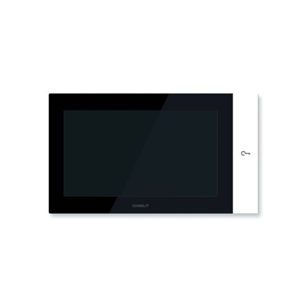 Innenstation Video 7TOP VIP in weiss für die Aufputzmontage, 7"-Touchscreen 16/9 und Freisprechfunktion Fullduplex. Gesprächsannahme, Selbsteinschaltung, Ruftonabschaltung werden über den 7" Touchscreen vorgenommen. Grundeinstellung wie Menü-Sprache, Rutöne etc. können über das Touchscreen Menü oder mit dem VIP Manager vorgenommen werden. Der Etagenruf wird separat mit zwei Drähten vom Etagentaster angeschlossen. 7TOP verfügt über Panik- und Alarm-Eingang. Die Funktion Videospeicher mit Nachricht bei Abwesenheit kann personalisiert werden. Zusätzlich ist der 7TOP mit einem WiFi Modul ausgestattet welches es ermöglicht den Monitor mit dem eigenen WiFi Heimnetzwerk zu verbinden. Im Google PlayStore oder Apple AppStore muss die Comelit App heruntergeladen und das Smartphone mittels QR-Code Scan mit dem Monitor verbunden werden. Somit ist der Video-Türruf inkl. Audiokommunikation im lokalen WiFi und im mobilen Datennetz (4G oder höher) erreichbar. Spannungsversorgung über PoE und Anschluss via RJ45 Stecker an das VIP System.