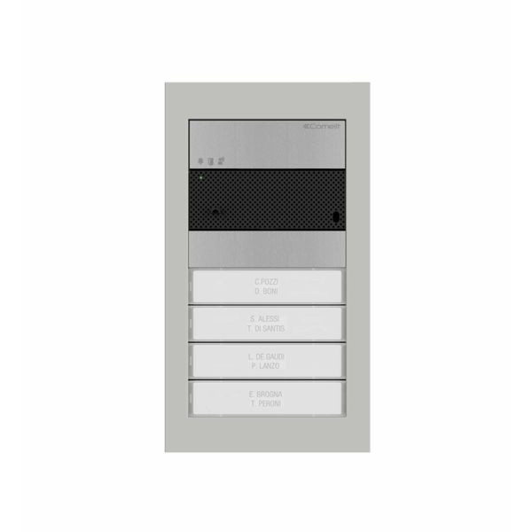 Adapterrahmen für die Renovierung bestehender Türstationen mit einem Modul von Drittherstellern wie Siedle, Ritto etc. mit der Comelit Ultra Modulbauweise. Der Rahmen dient dazu, den vorhandenen Ausschnitt im Mauerwerk abzudecken und bei einer bestehenden Einbauhöhe von min. 1,35m eine vorhandenen Audiosprechanlage durch eine Videosprechanlage zu ersetzen. Abmessungen 180 x 230 x 3mm. Farbe silber.
